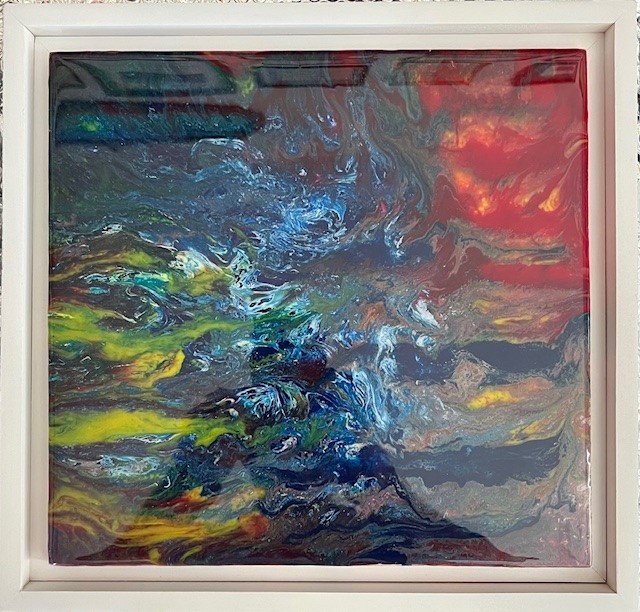 Turmoil – 12″w x 12″h overall. Original Resin on Wood w/ custom frame.